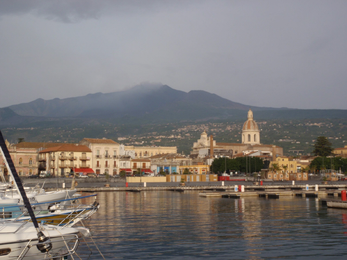 Nach einer mehr oder weniger anstrengenden Überfahrt haben wir in Riposto angelegt um unsere Yacht wieder auf Vordermann zu bringen. Hafenmanöver standen auch noch auf dem Programm. Hier geht Holger von Bord und die Crew für die nächsten zwei Wochen ist vermutlich schon auf der Anreise. |