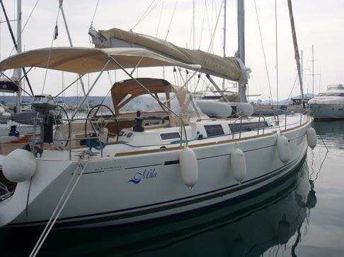 Unsere Yacht in den Kanaren ist eine sehr schöne Dufour 525 Grand Large aus dem Jahr 2007. Mit 5 Kabinen und 4 Nasszellen haben wir bei einer Belegung mit maximal 6 Mitseglern (ausser bei Gruppentörns) wirklich genügend Platz.